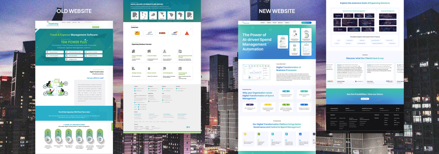 On the digital front, we designed and developed Expenzing’s original website and later led a complete website revamp as the product and market positioning evolved. The new site focuses on clarity, modular design, and enterprise credibility—allowing different stakeholders to quickly understand product value while enabling the marketing team to launch pages and updates with speed.