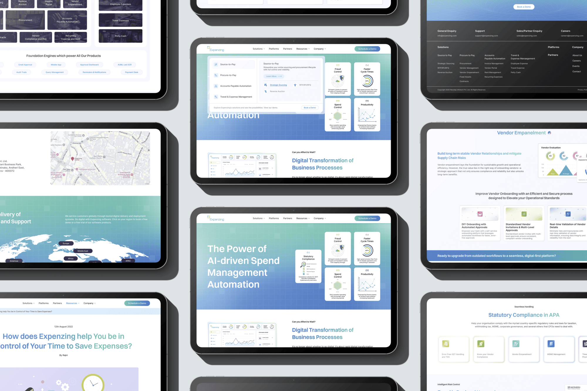 Expenzing, an enterprise spend management and procurement SaaS, partnered with Zaapr to build and scale a cohesive brand and digital presence over the long term. We created their brand identity, designed both their legacy and current websites, and continue to support them through ongoing retainer. The outcome is a clear, enterprise-ready narrative that simplifies complex finance workflows and supports consistent growth across sales and marketing touchpoints.