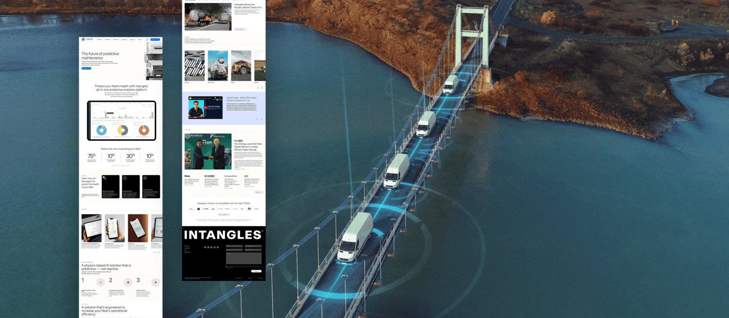 Intangles has been working with us for years, and while we originally created their first website, the platform had evolved far beyond what the old site communicated. The previous website presented the technology in a highly technical way, making it difficult for fleet decision-makers across the globe to quickly understand the business outcomes—safety, uptime, and cost-savings.