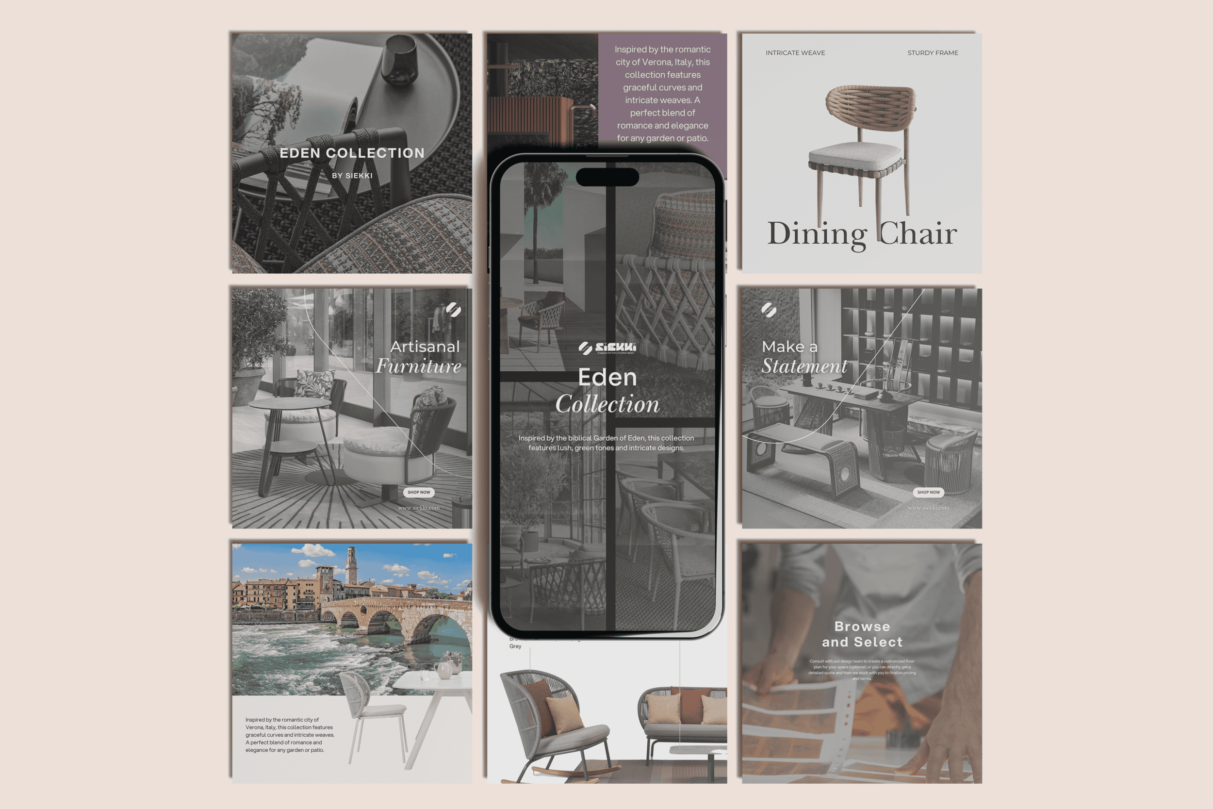 The transformation positioned Siekki as a composed, design-led outdoor furniture brand built for serious B2B partnerships. The new identity delivers immediate recognition, the website communicates value with clarity, and the collaterals support sales conversations with confidence. Most importantly, Siekki now presents a unified brand—one that feels timeless, intentional, and globally relevant—strengthening its presence across hospitality and commercial markets while staying true to its cultural roots.
